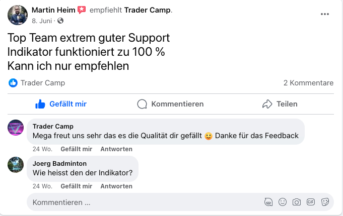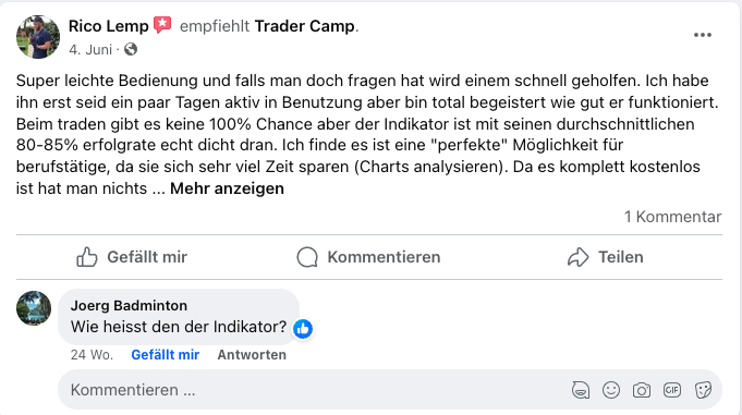 Als langerfahrener Trader ist meiner Meinung nach der Einsteigs Indikator PRO ein perfektes Tool für Trader. Es zeigt Einstiege und Ausstiege. Auch wir testen weiterhin den Indikator.